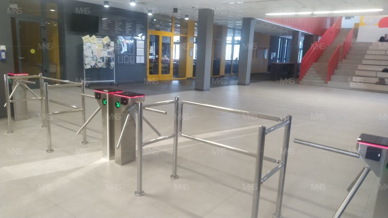 Установка СКУД в учебном учреждении (школа): турникеты из нержавейки с автоматической антипаникой (автоматическая разблокировка при срабатывании сигнализации), ограждения из нержавеющей стали, открываемое быстроразблокируемое ограждение "АНТИПАНИКА", Программно-аппаратный комплекс с поддержкой "карты учащегося", бесплатными мгновенными уведомлениями о проходе. Поставка, установка и сервисное обслуживание.