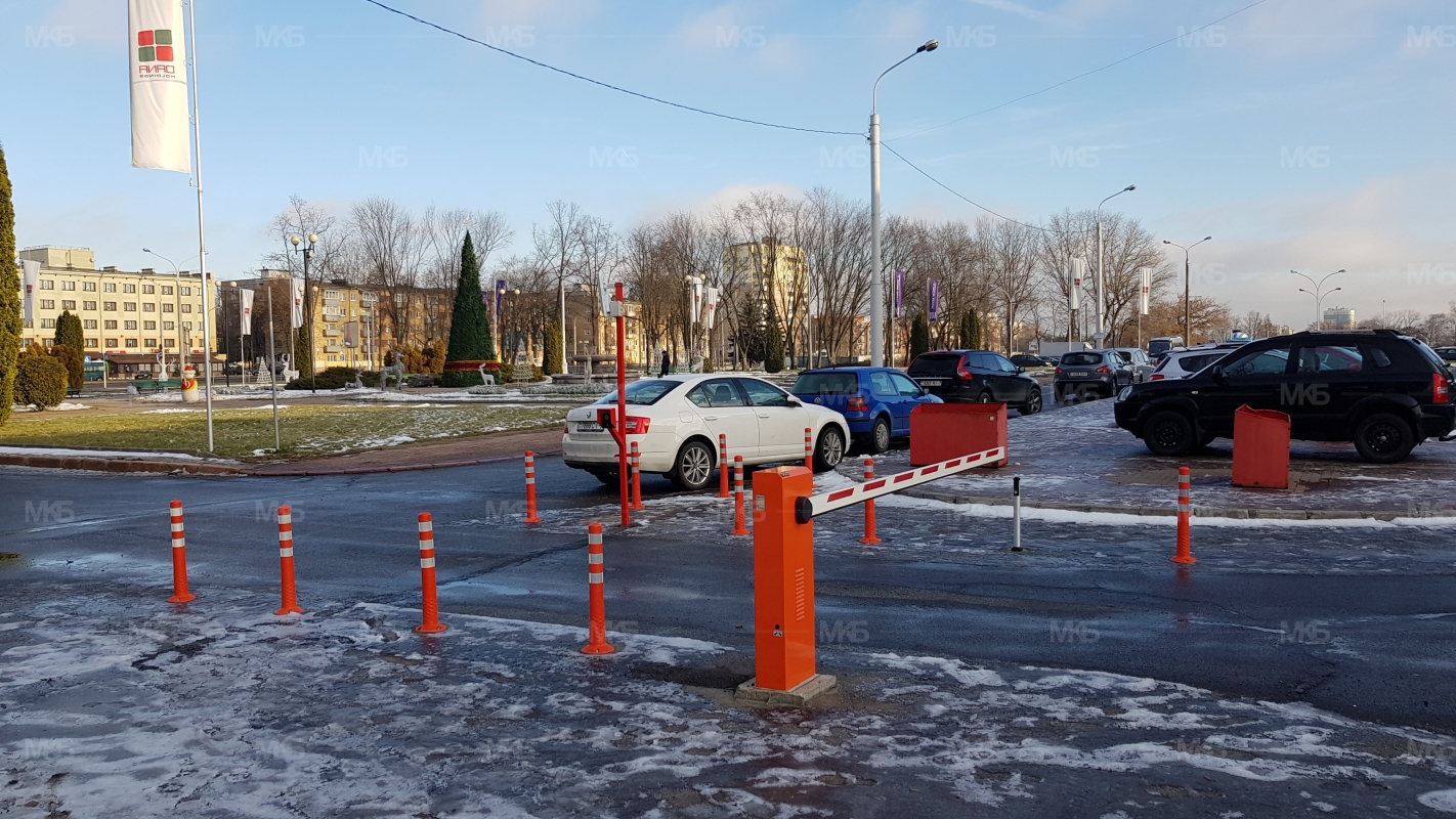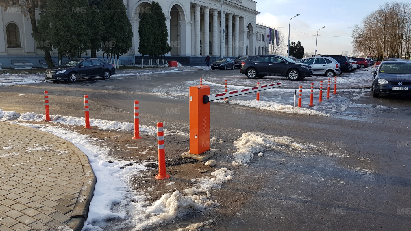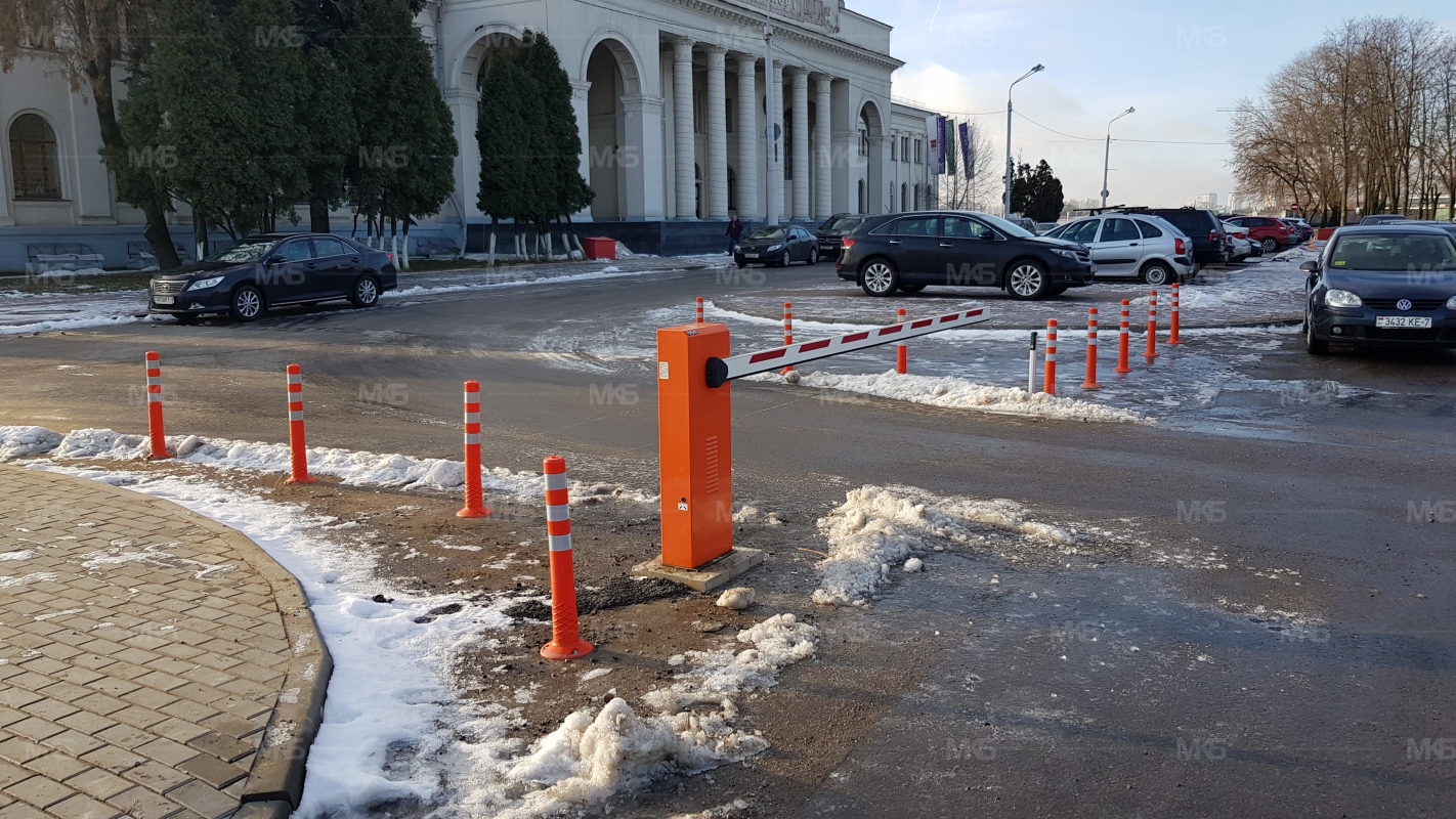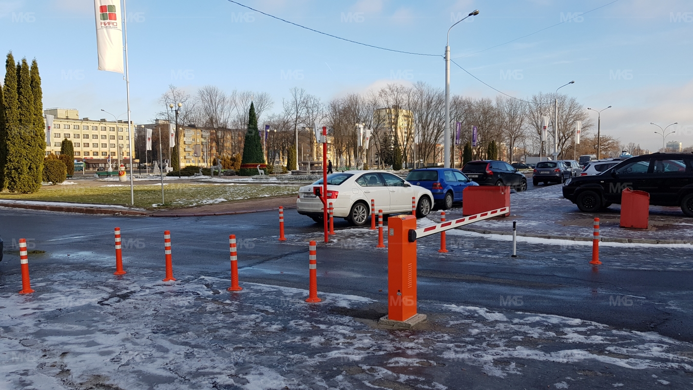 Установка системы RFID парковка. Скоростная гидравлическая автоматика FAAC. Въезд по RFID меткам, выезд по индукционной петле автоматически. Использование гибких парковочных столбиков для организации движения и маневрирования.