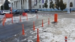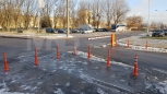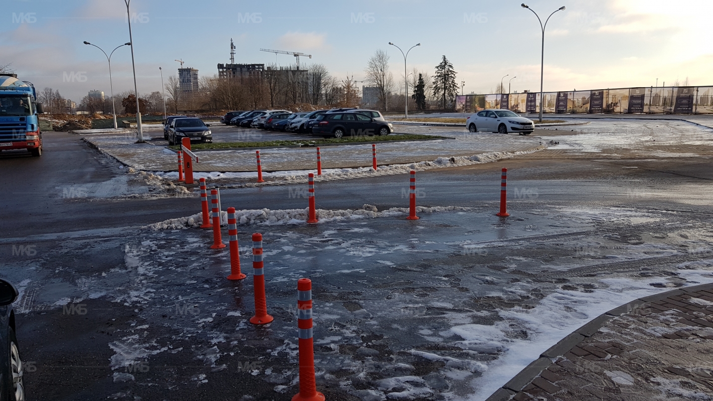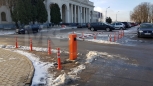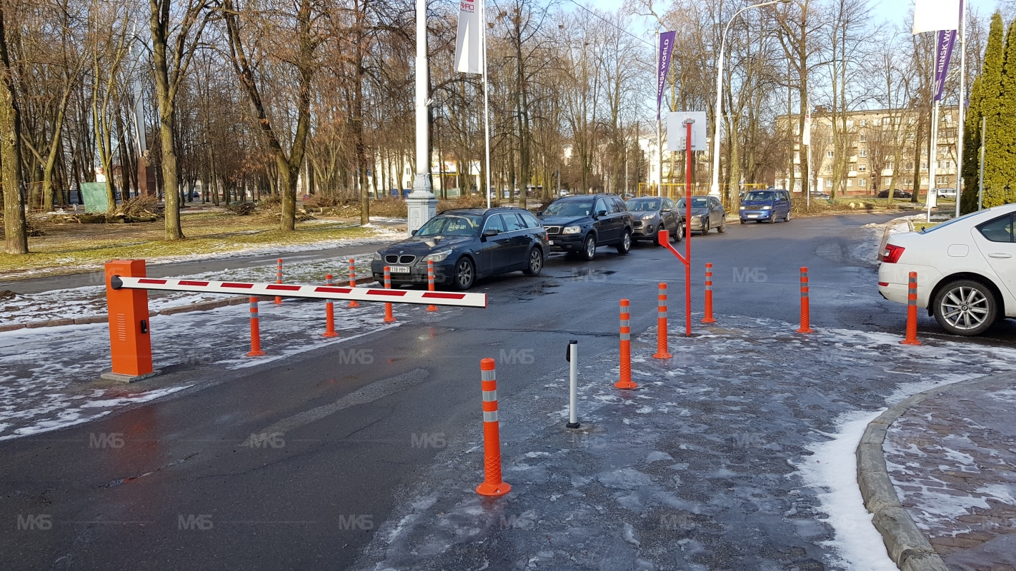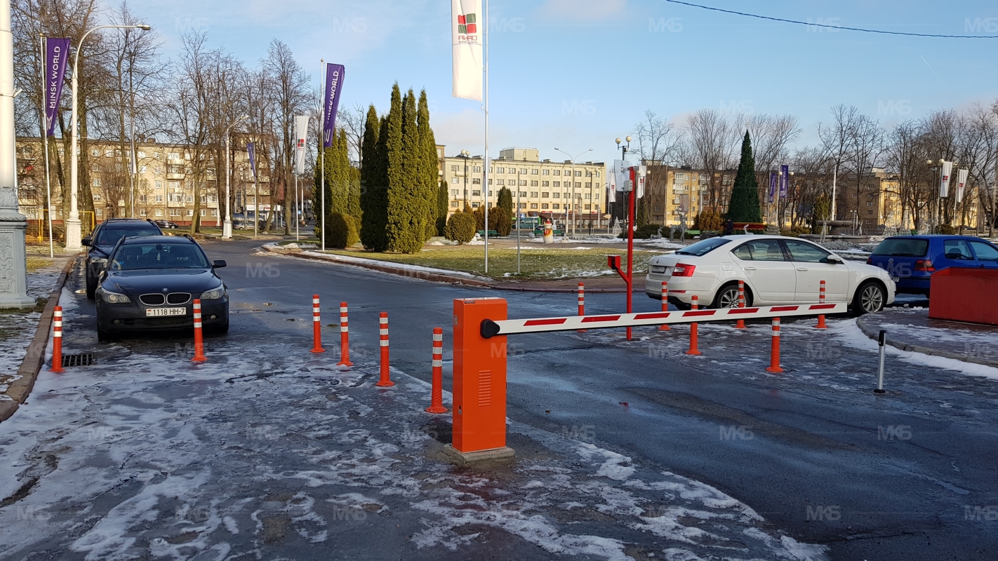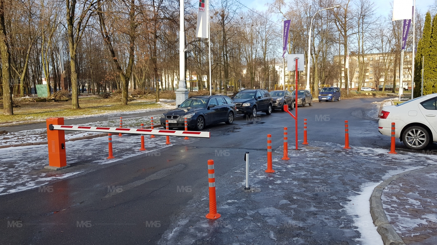 Установка системы RFID парковка. Скоростная гидравлическая автоматика FAAC. Въезд по RFID меткам, выезд по индукционной петле автоматически. Использование гибких парковочных столбиков для организации движения и маневрирования.