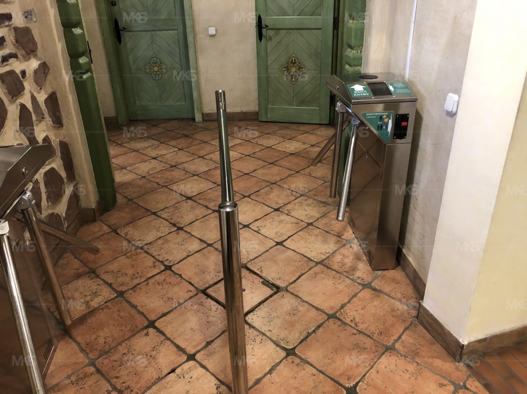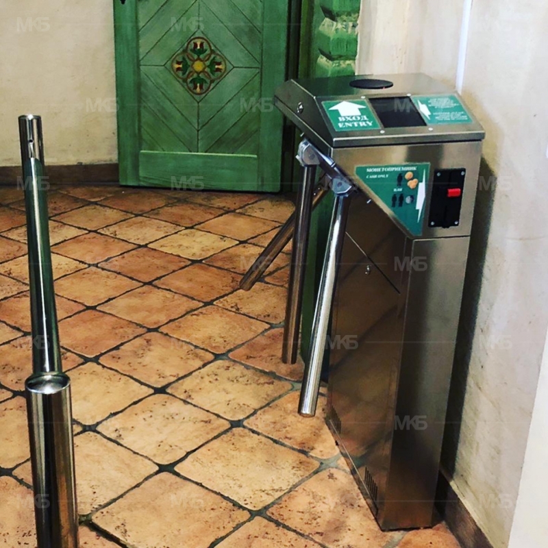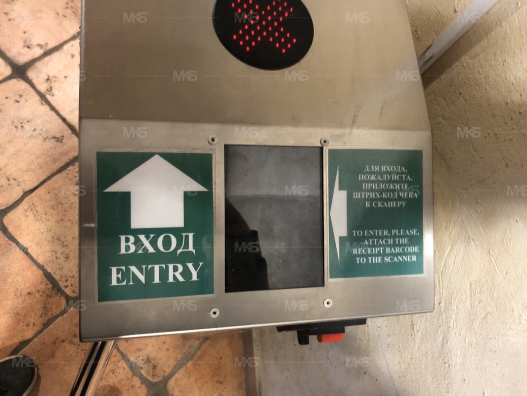 Установка платежно-пропускной системы на входе в санузел. Проход по монетоприемнику с блоком управления, штрих-кодам и сканеру (уникальный код генерируется в чеке на услугу, после чего может быть использован в течение настраиваемого времени и настраиваемое количество раз).