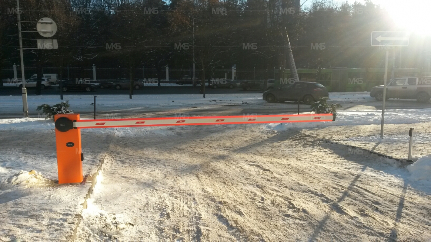 Установка шлагбаума для ограничения въезда на парковку, доступ на стоянку с помощью GSM-модуля управления, выезд автоматический по петле электромагнитной индукции