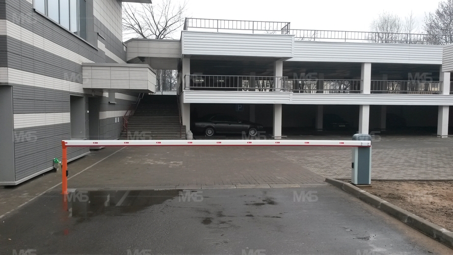 Оснащение паркинга 3-мя шлагбаумами с ситемой контроля доступа, видеодомофонами, светофорным регулированием на датчиках движения.