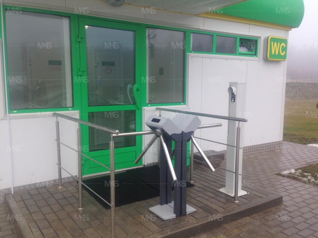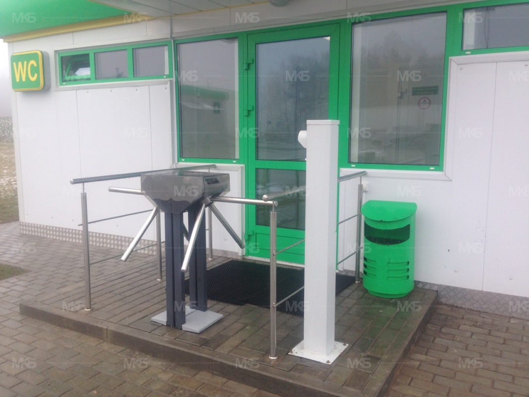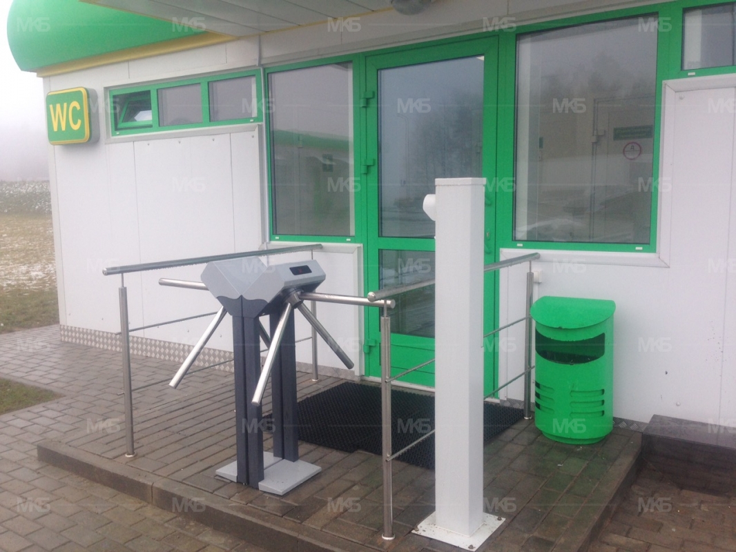 Создание системы взимания платы на АЗС (система "платный туалет") на базе турникета, монетоприемника без функции сдачи. Установка перил для преграды доступа в зону. Выход по кнопке. Объект "под ключ".