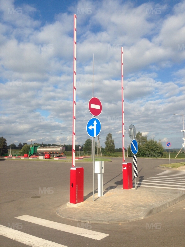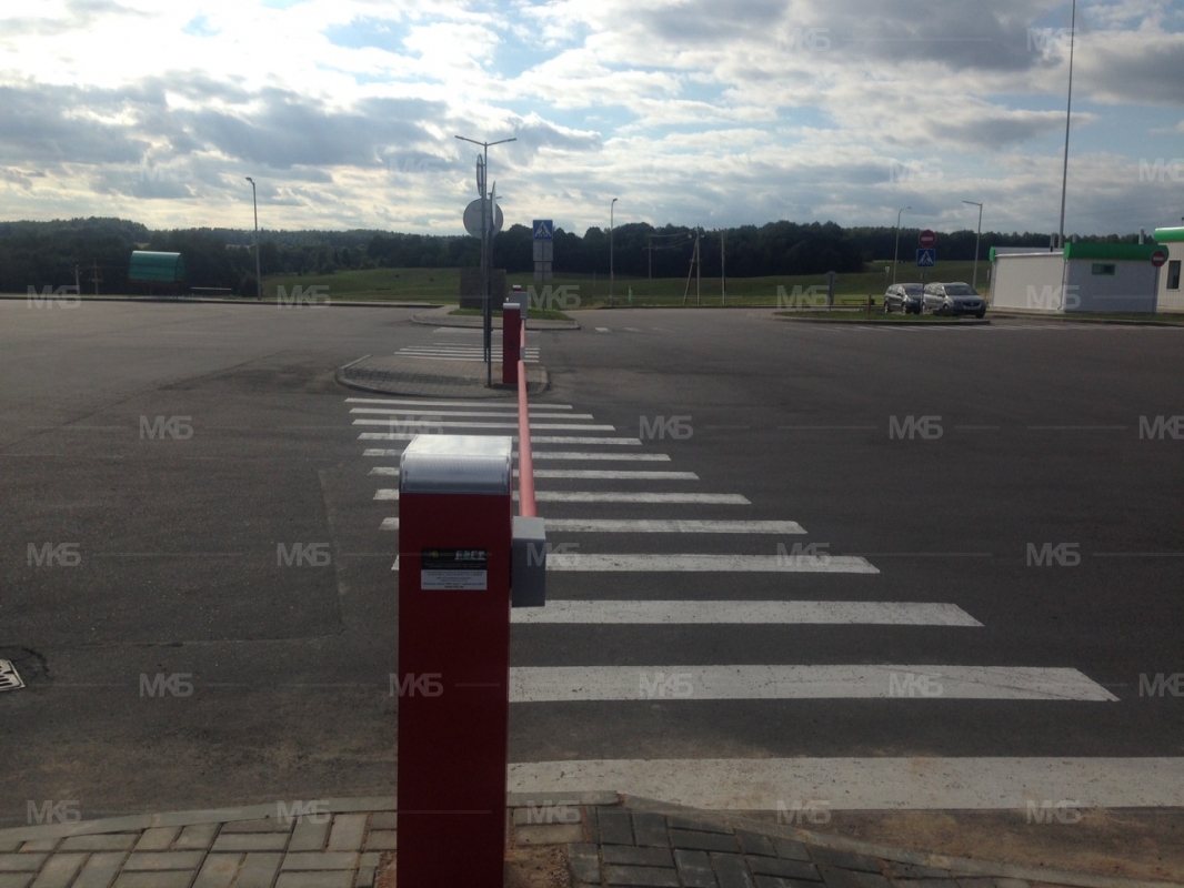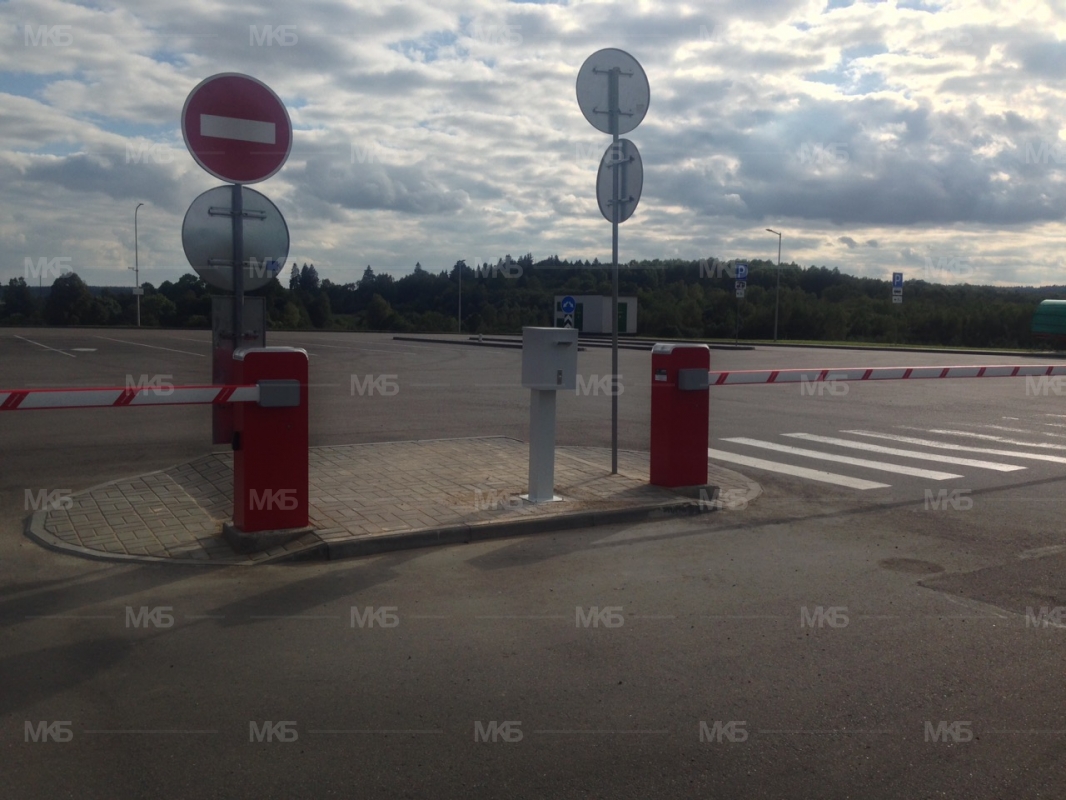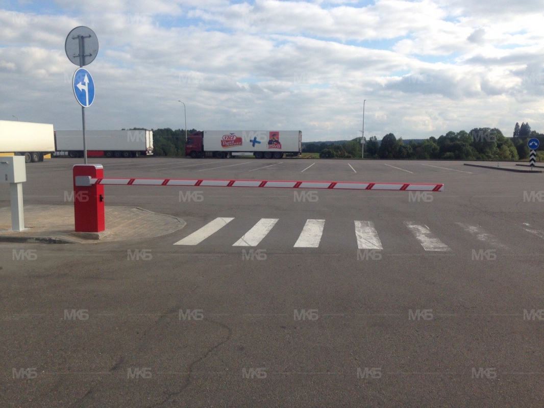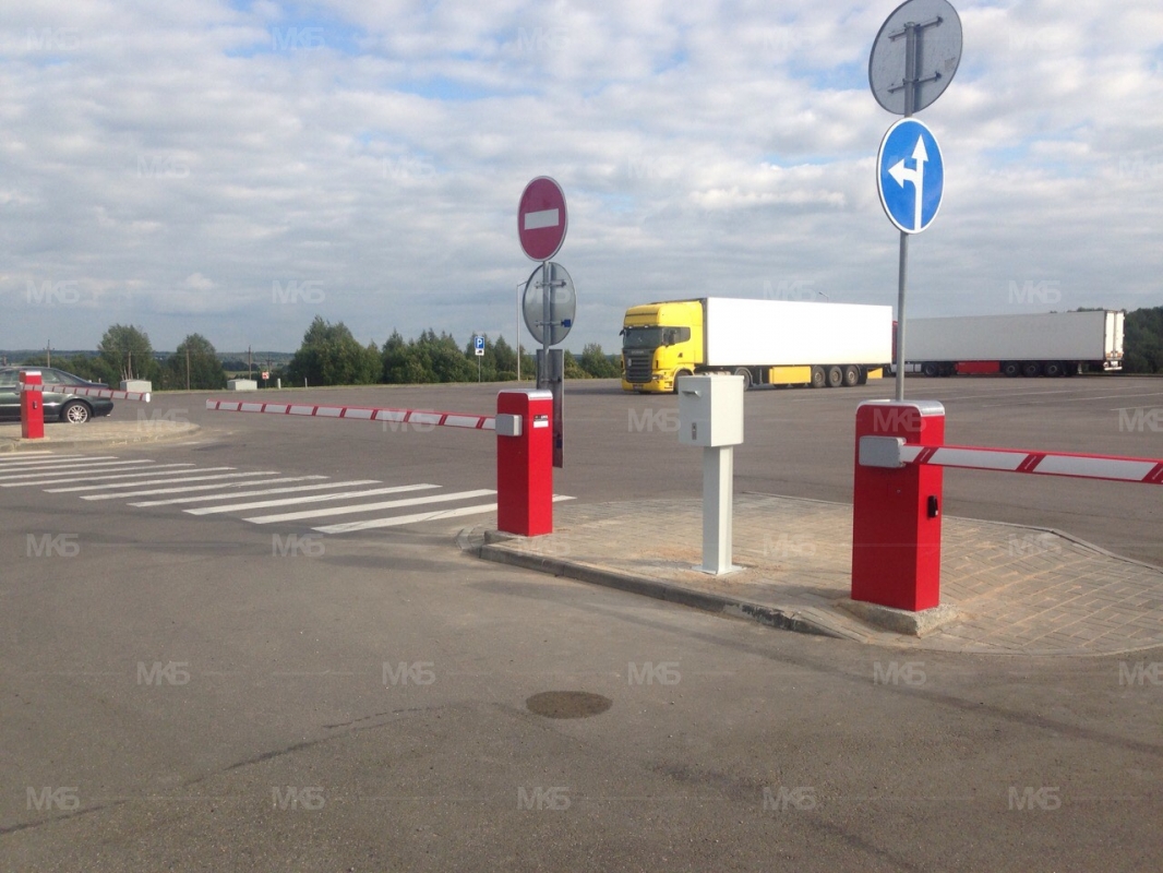 Автоматизация допуска и системы оплаты на парковке грузовых автомобилей. Разработка и установка паркомата с функцией выдачи парковочного талона с фиксацией времени заезда. Управление шлагбаумами автоматическое на въезд с паркомата. Предусмотрено также проводное и радиоуправление. Шлагбаумы оснащены датчиками безопасности, светодиодной подстветкой.