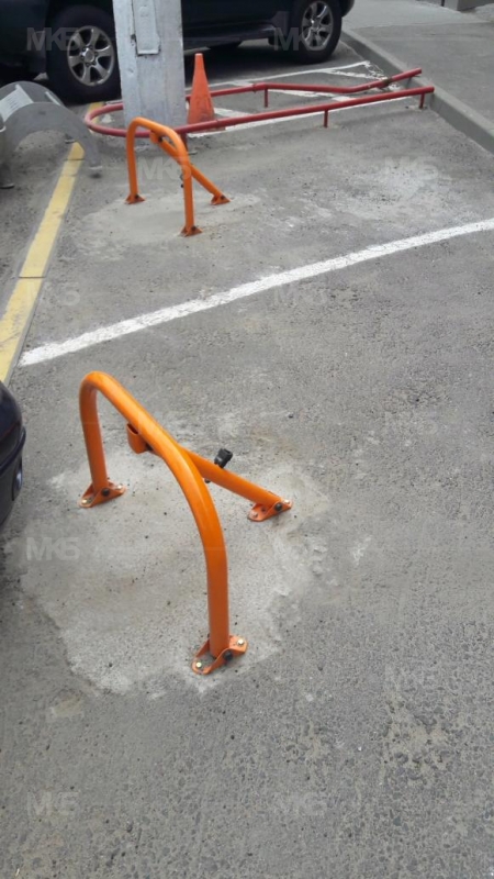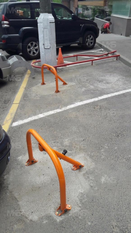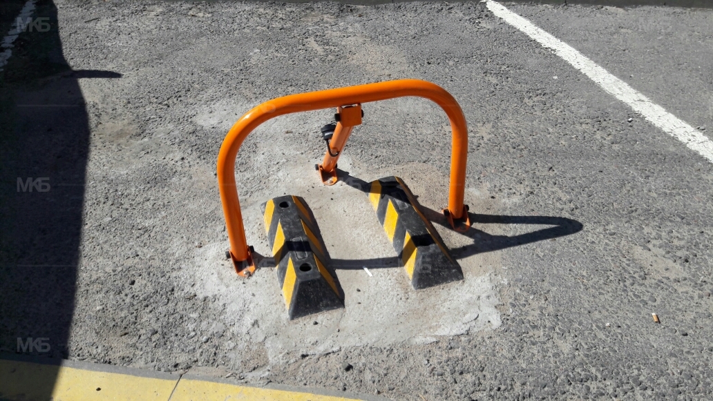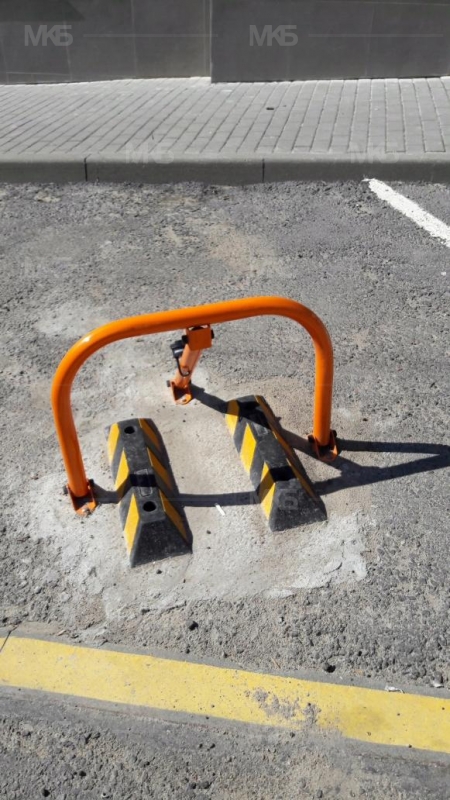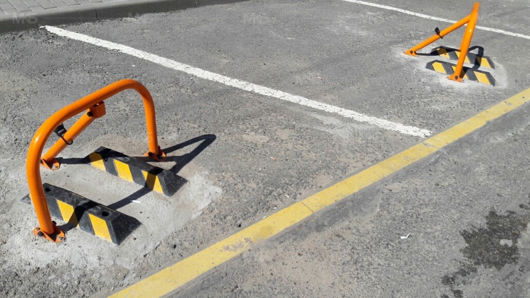 Установка 5 механических парковочных барьеров, защита 3-х барьеров резиновыми колесоотбойниками.