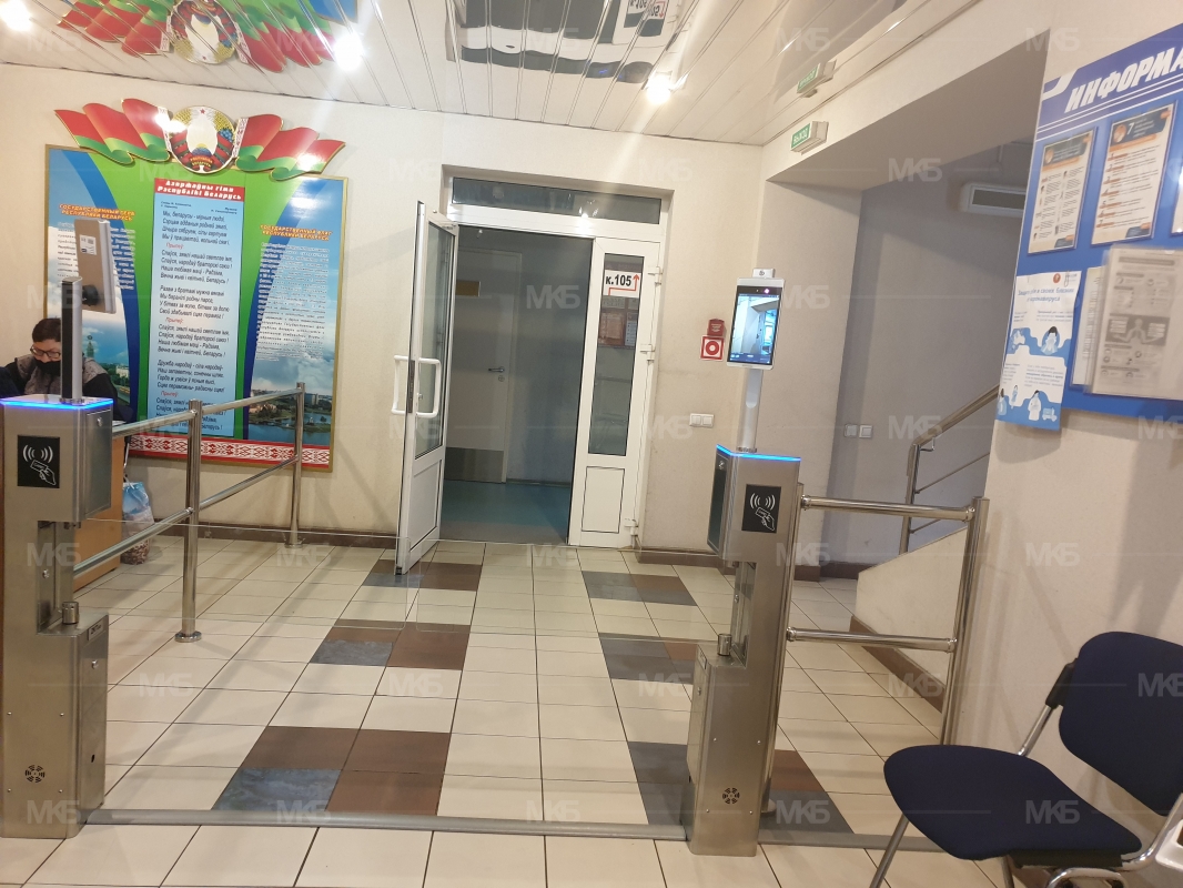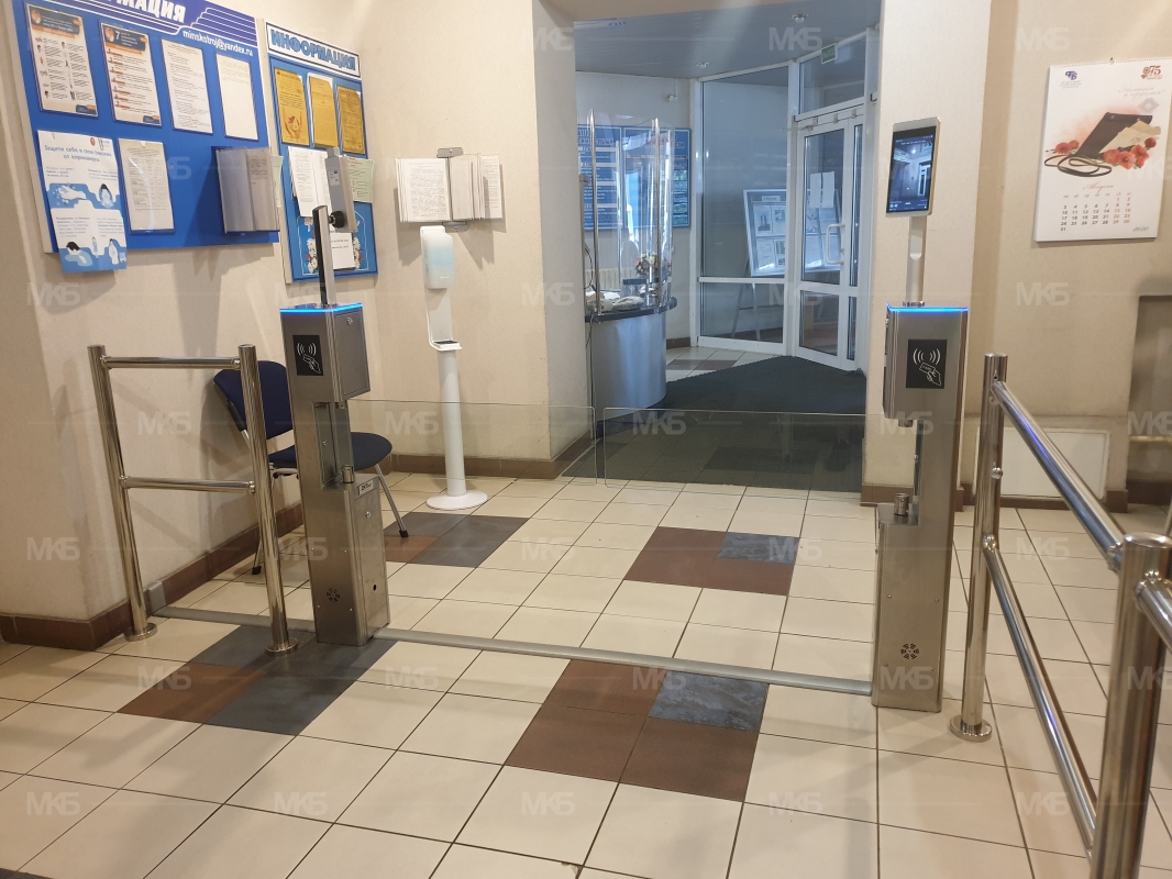 Установка системы контроля и управление доступом на проходной организации. Калитка автоматическая для автоматизации прохода раздельно вход-выход, модульных ограждений из нержавеющей стали, биометрического терминала распознавания лица с измерением температуры на вход, биометрического терминала распознавания лица на выход, программного обеспечения управления и администрирования с фиксацией событий, показателей измерения, причин отказа, срочными уведомлениями