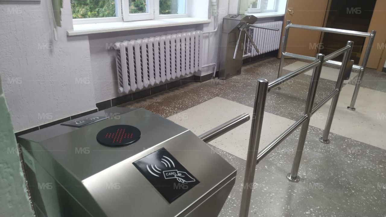 Установка СКУД в учебном учреждении (школа): турникеты из нержавейки с автоматической антипаникой (автоматическая разблокировка при срабатывании сигнализации), ограждения из нержавеющей стали, открываемое быстроразблокируемое ограждение "АНТИПАНИКА", Программно-аппаратный комплекс с поддержкой "карты учащегося", бесплатными мгновенными уведомлениями о проходе. Поставка, установка и сервисное обслуживание.