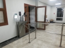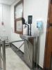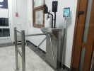 Установка системы контроля и управление доступом на проходной организации. Турникет-трипод с терминалом распознавания лица с измерением иемпературы и алкотестером на вход, система модульных ограждений, терминал распознавания лица и алкотестером на выход.