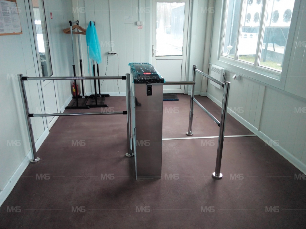 Установка тумбового турникета с сетевой системой КД и УРВ. Ограждения и Антипаника.
