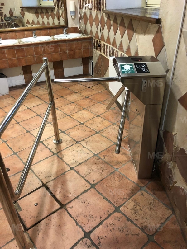 Установка турникетов на входе в санузел. Пропуск по картам доступа, сканеру штрих-кодов, монетоприемнику.