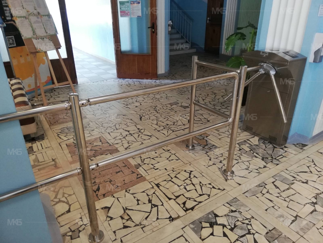 Установка СКУД в учебном учреждении (школа): турникеты из нержавейки с автоматической антипаникой (автоматическая разблокировка при срабатывании сигнализации), ограждения из нержавеющей стали, открываемое быстроразблокируемое ограждение "АНТИПАНИКА", Программно-аппаратный комплекс с поддержкой "карты учащегося", бесплатными мгновенными уведомлениями о проходе. Поставка, установка и сервисное обслуживание.