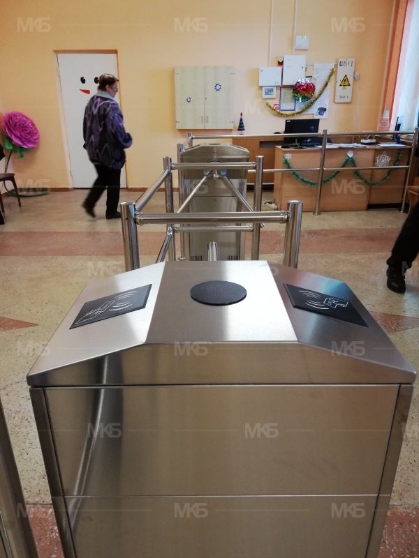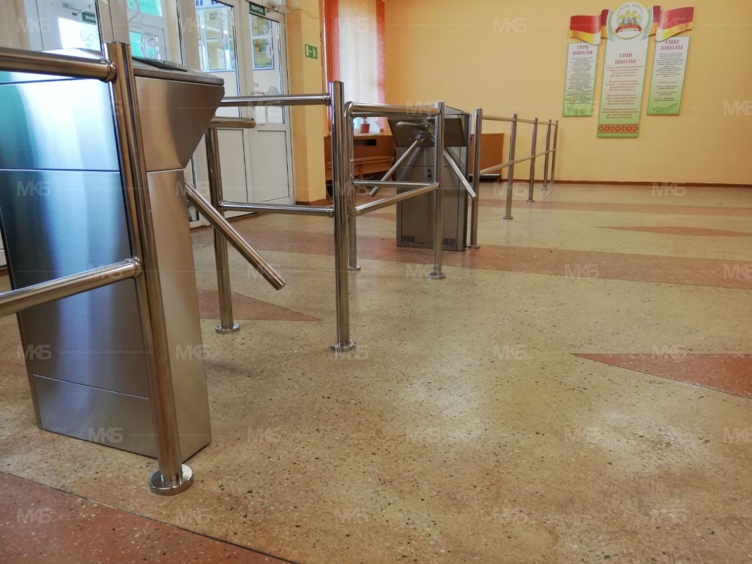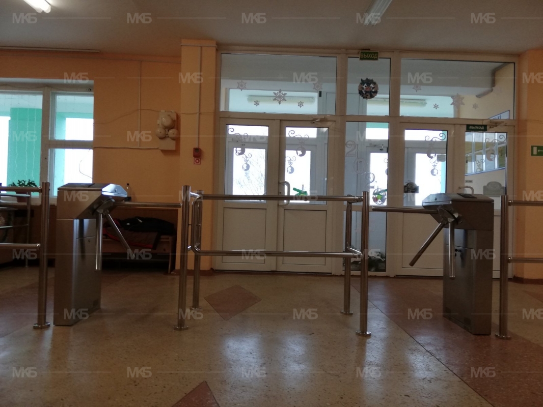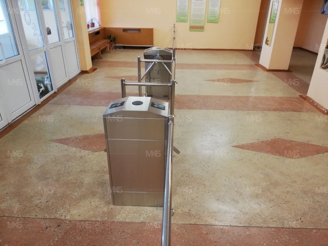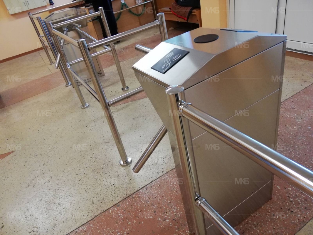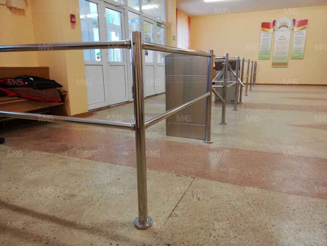 Установка СКУД в учебном учреждении: турникеты из нержавейки с автоматической антипаникой, ограждения из нержавейки с секцией открываемой быстроразблокируемой, ПО. Поставка, Установка и сервис.
