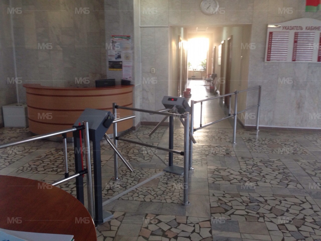 Система контроля доступа на проходной. Два турникета с сетевой системой контроля доступа, ПО "ЭПИКУР", планки "Антипаника".
