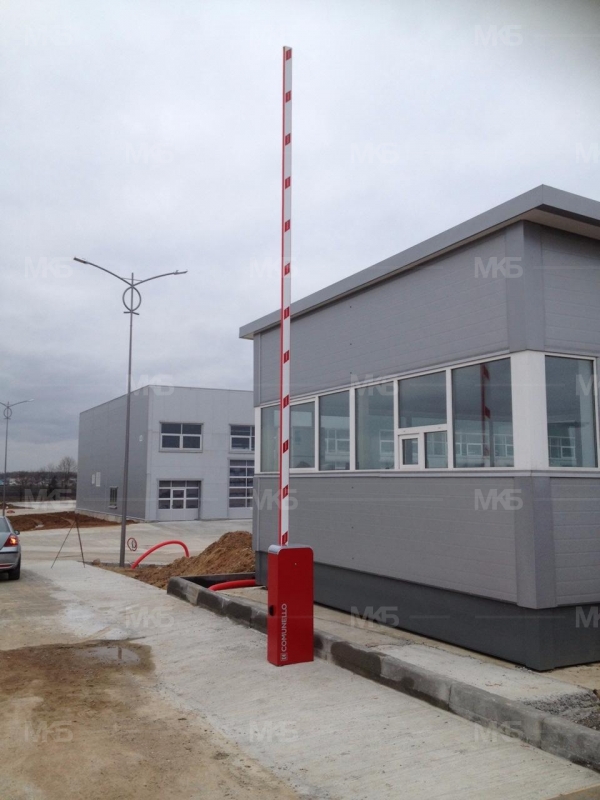 Установка шлагбаума Comunello LIMIT600 6 метров, беспроводные фотоэлементы безопасности. Управление со стационарного пульта и дистанционными пультами.