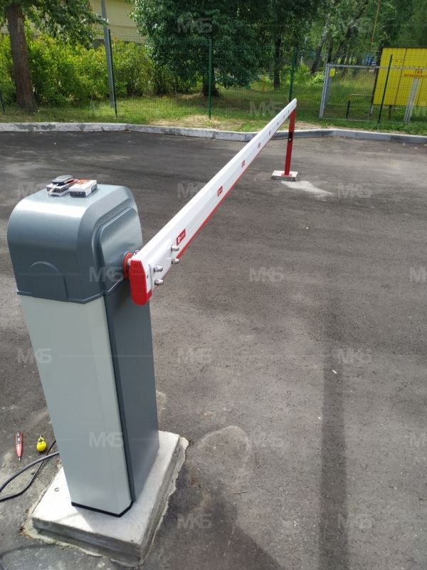 Установка автоматического шлагбаума с радиоуправлением, GSM-управлением, системой безопасности.