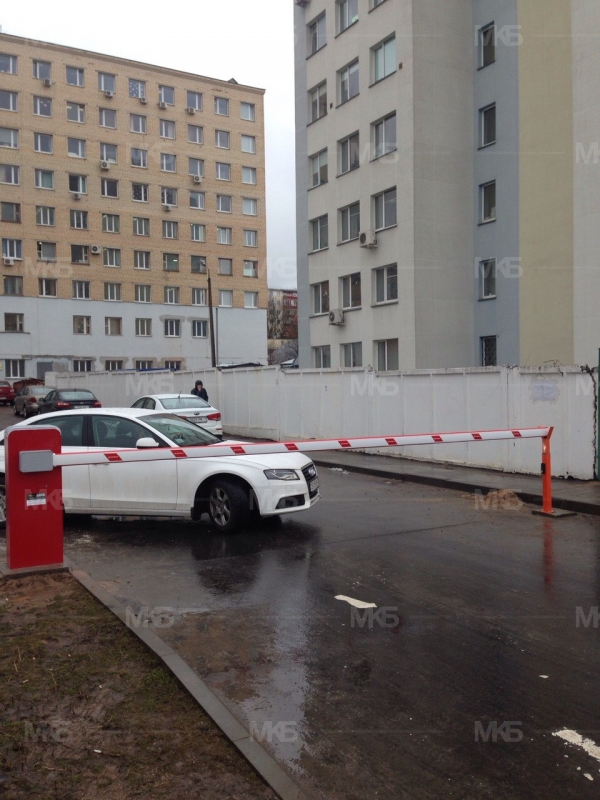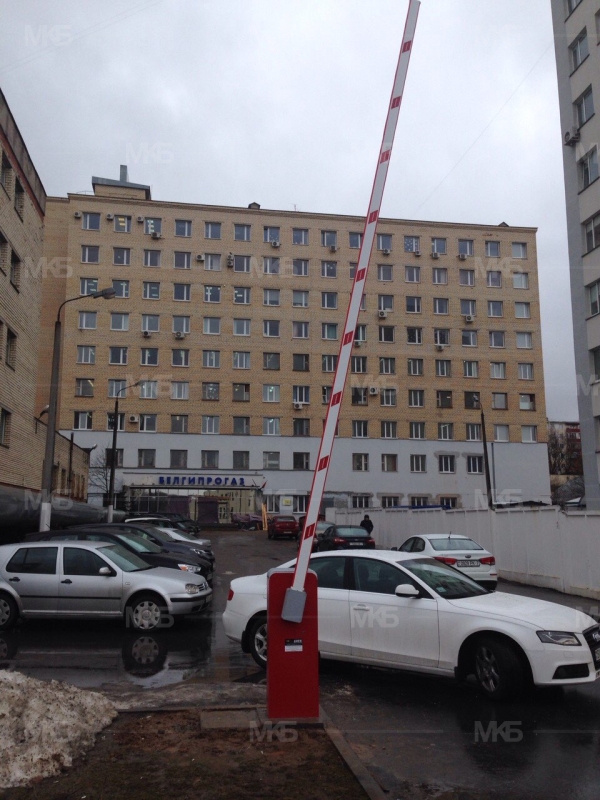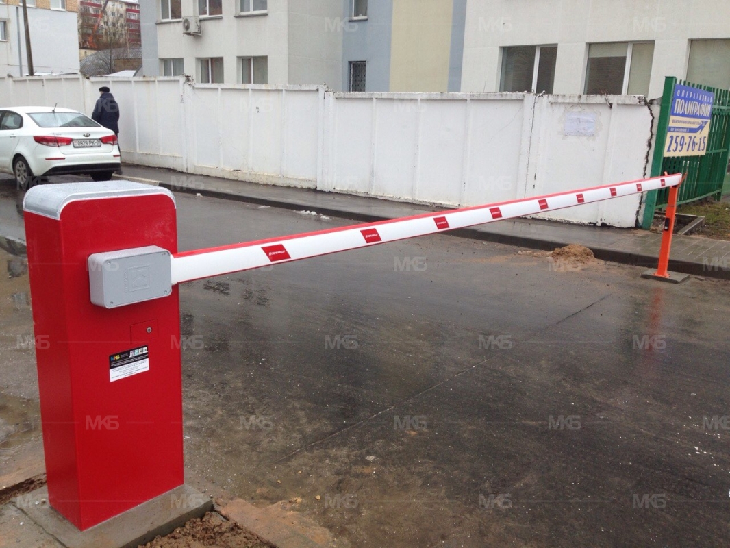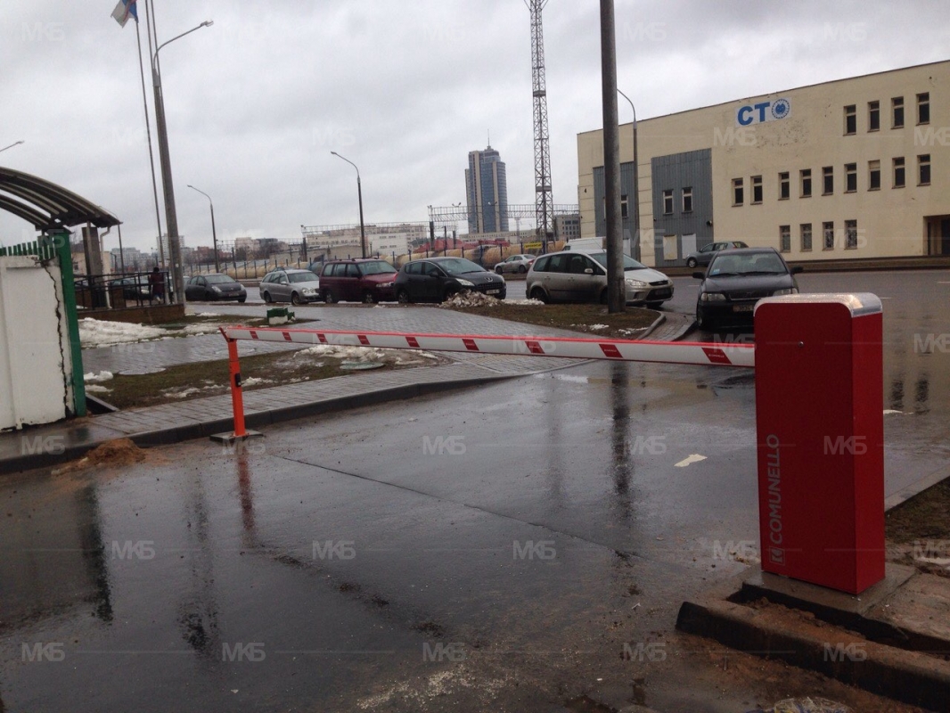 Установка шлагбаума Comunello LIMIT600 (Италия) с фотоэлементами, управлением посредством GSM и радиоуправлением.