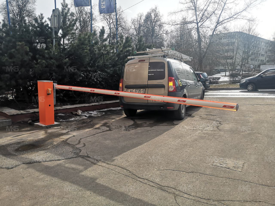 Установка шлагбаума с системой безопасности, управление с пульта дистанционного управления шлагбаумом, GSM модуль управления.