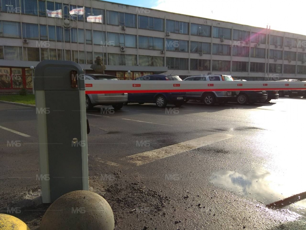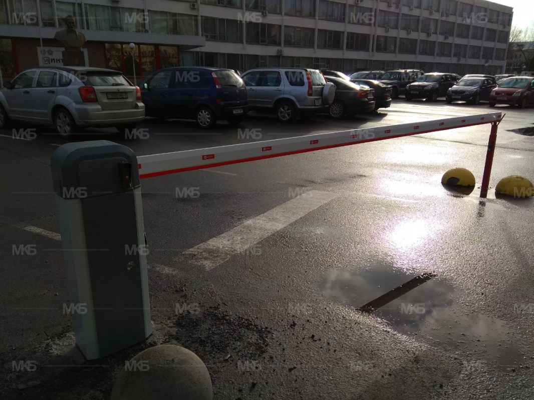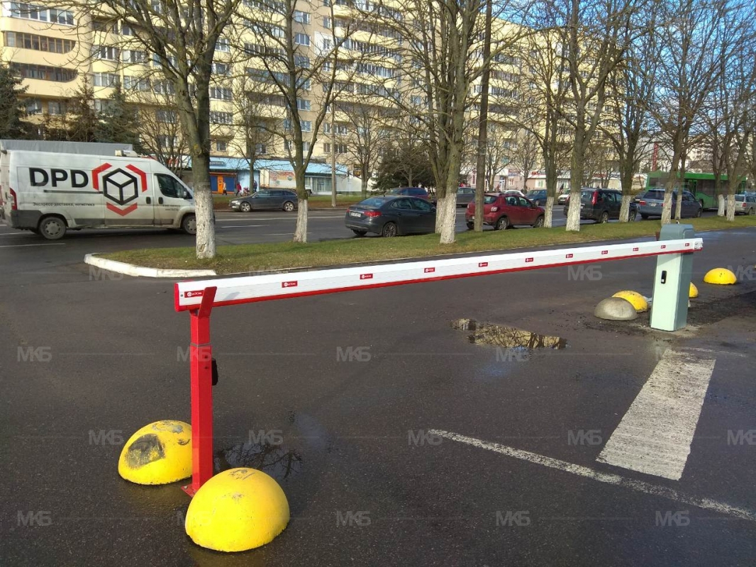 Установка 2-х шлагбаумов с фотоэлементами безопасности, радиоуправлением с функцией контроля доступа, системой домофонной аудиосвязи.