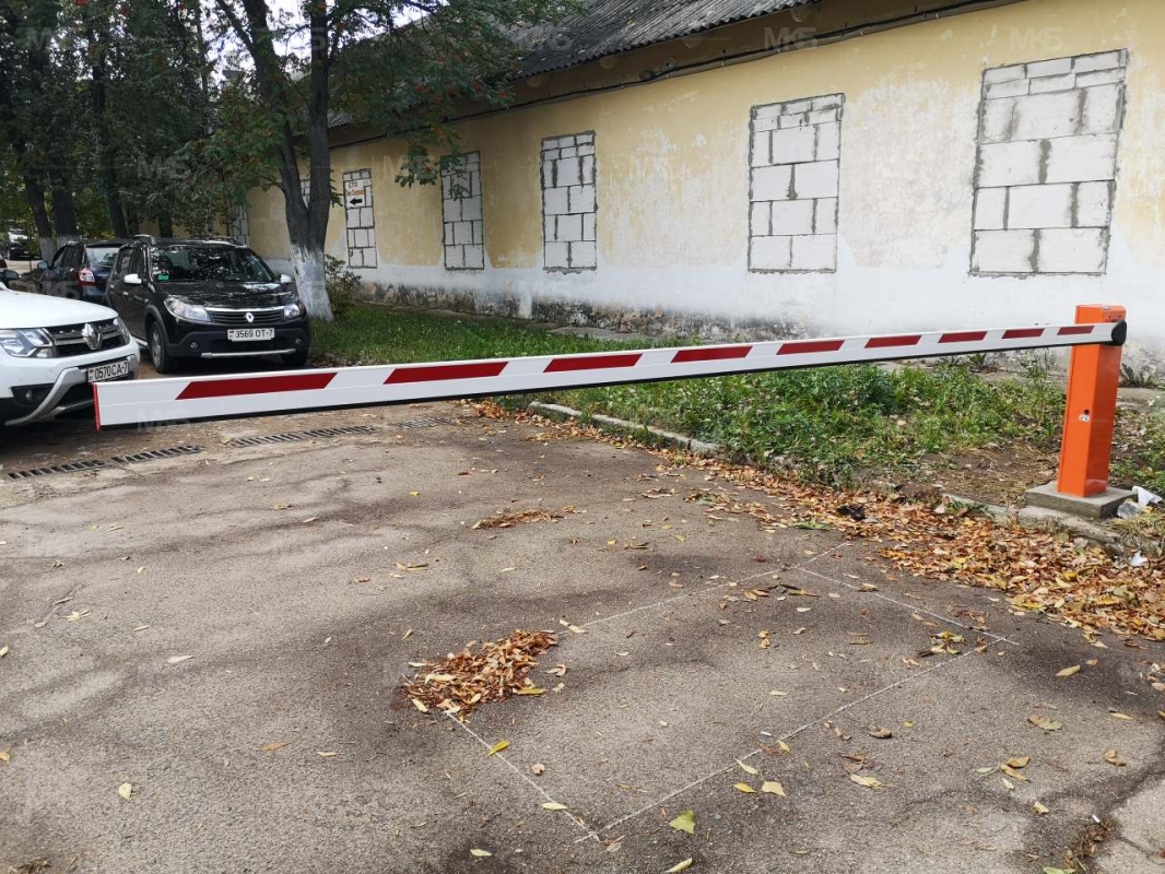 Установка гидравлического шлагбаума, выезд автоматический, доступ по звонку мобильного телефона. Система видеонаблюдения.