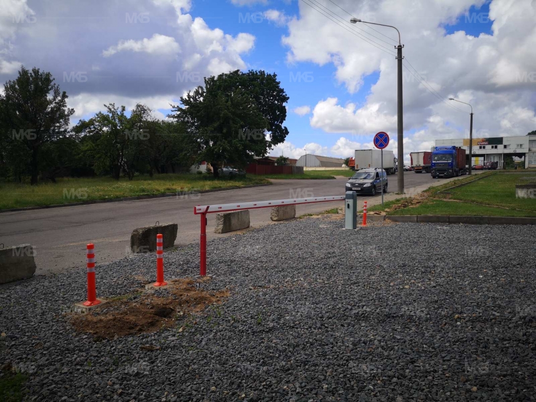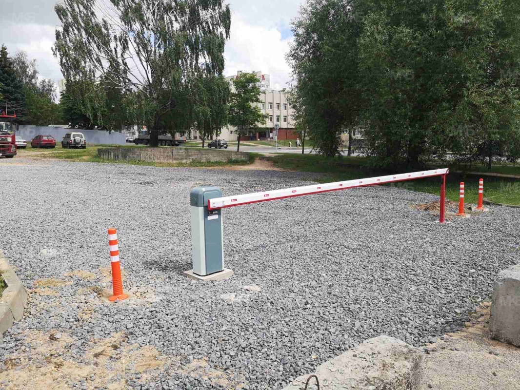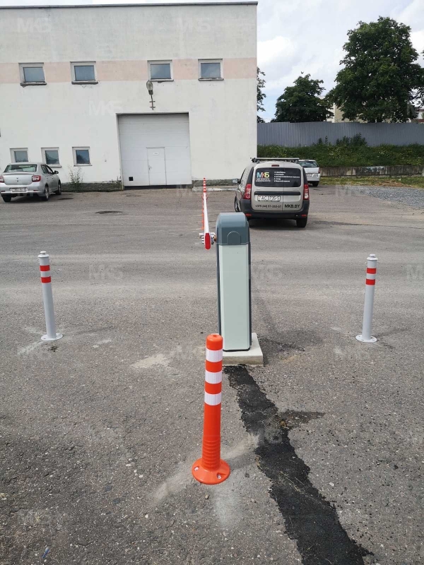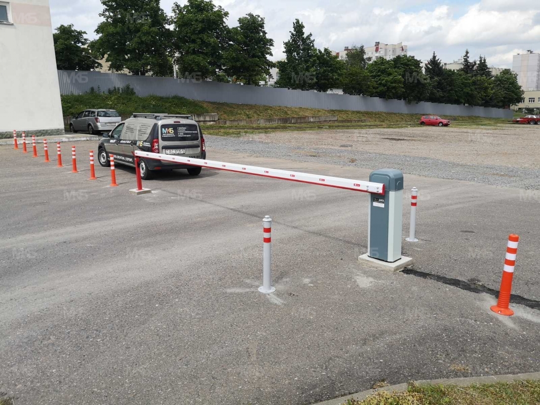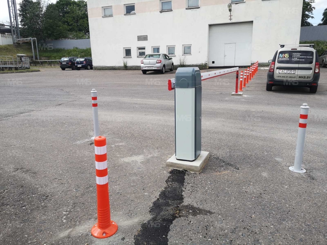 Установка шлагбаума с управлением и системой безопасности. Гибкий столбики для зонирования.