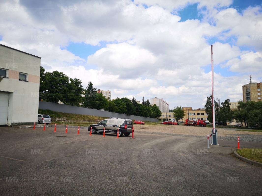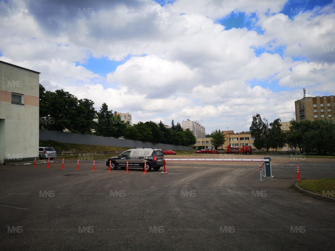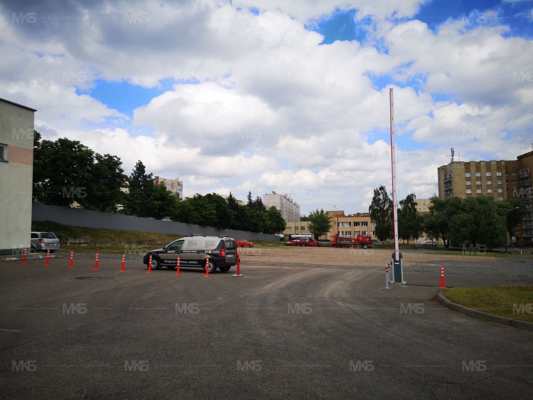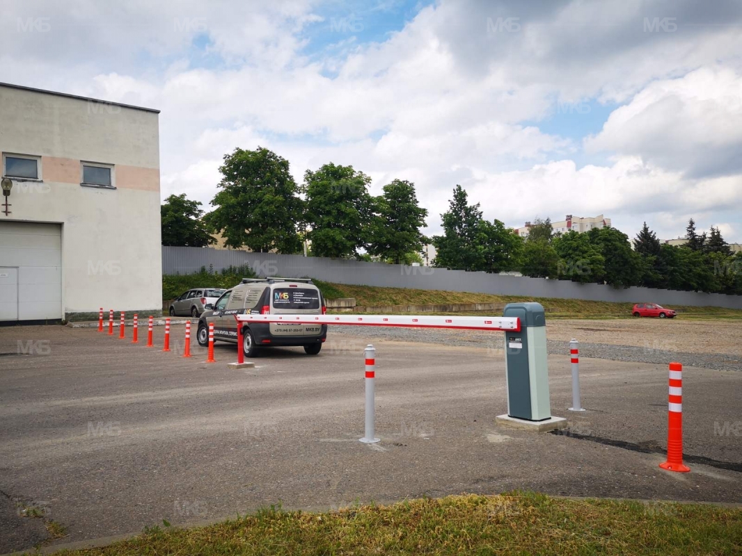 Установка шлагбаума с управлением и системой безопасности. Гибкий столбики для зонирования.