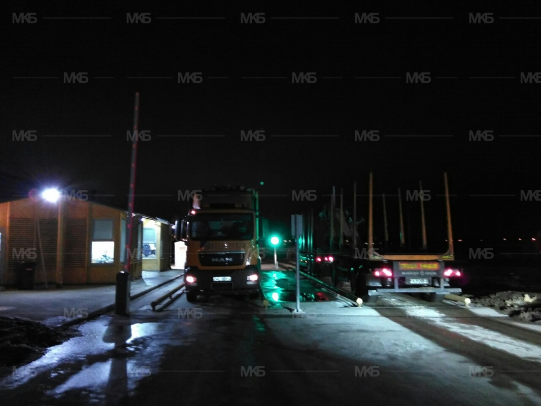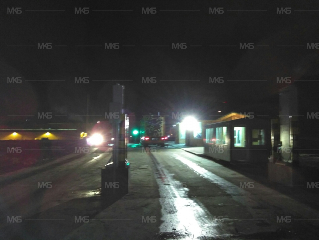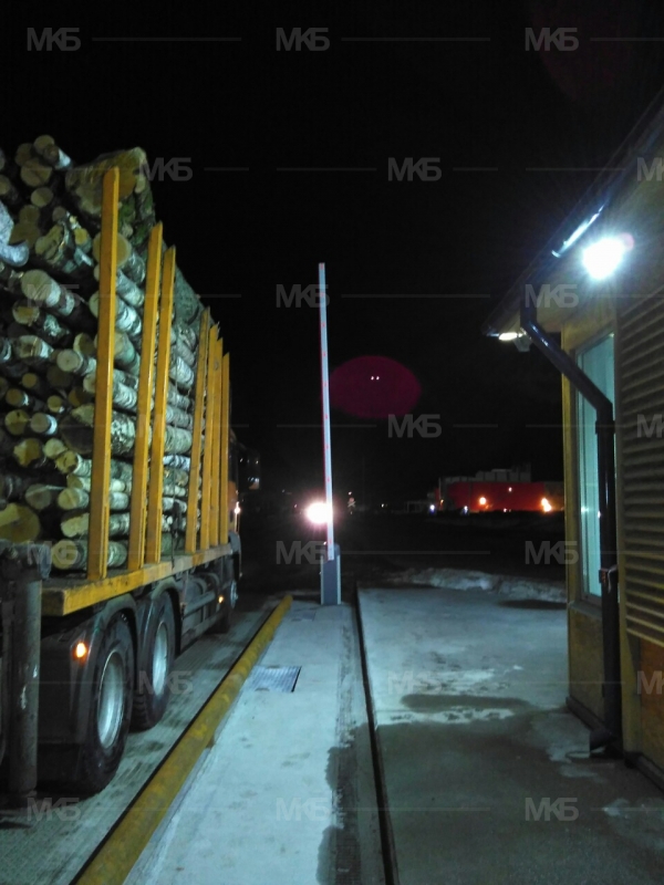 Организация пропускного режима на весовых. Установка 2-х шлагбаумов с датчиками безопасности, а также 3 светофора, подключенных к автоматике, для регулирования потока грузовых автомобилей.