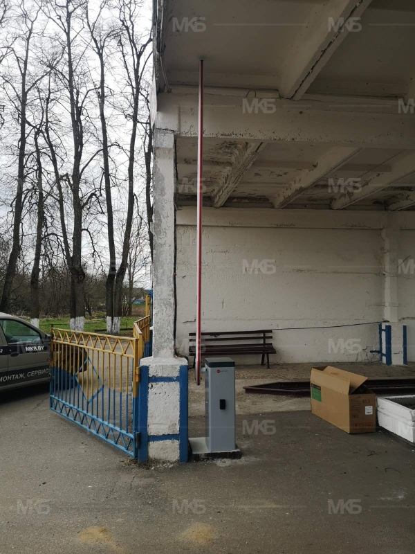 Установка шлагбаума с системой безопасности и управлением с пульта.