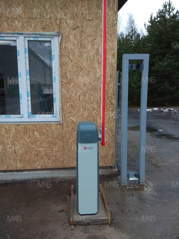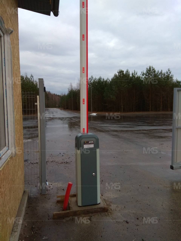Установка шлагбаума с проводным управлением.