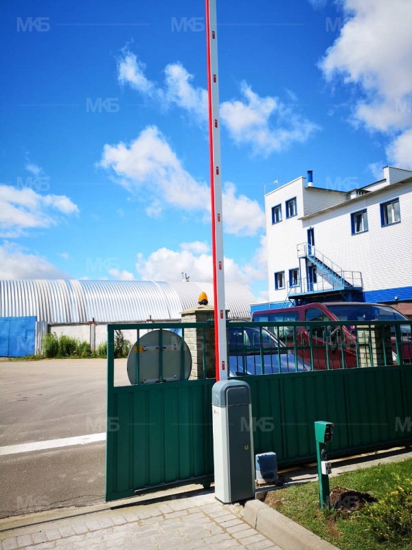 Установка шлагбаума с фотоэлементами. Управление с пультов ДУ, с кнопочной панели.