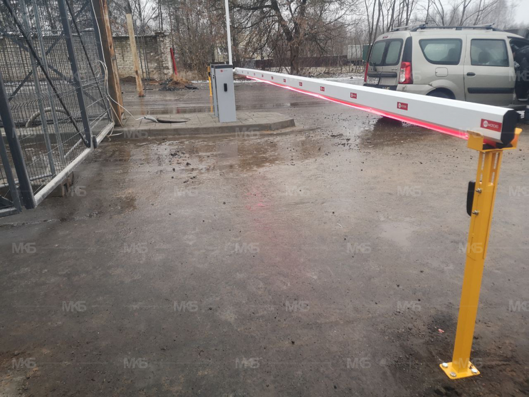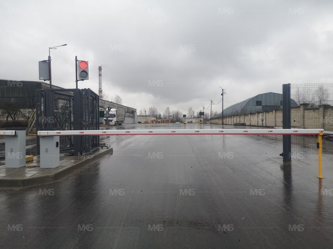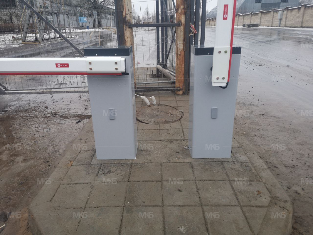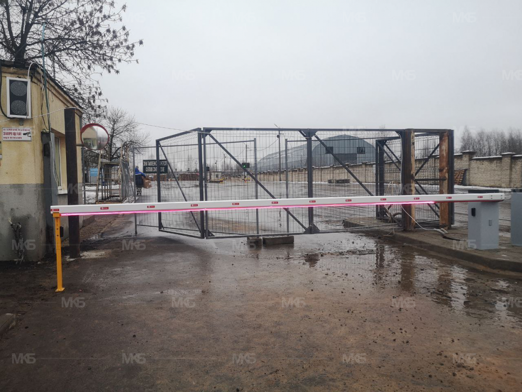 Установка шлагбаумов с фотоэлементами, системой световой индикации по типу Светофор красный/зеленый, диодная подсветка стрел шлагбаумов
