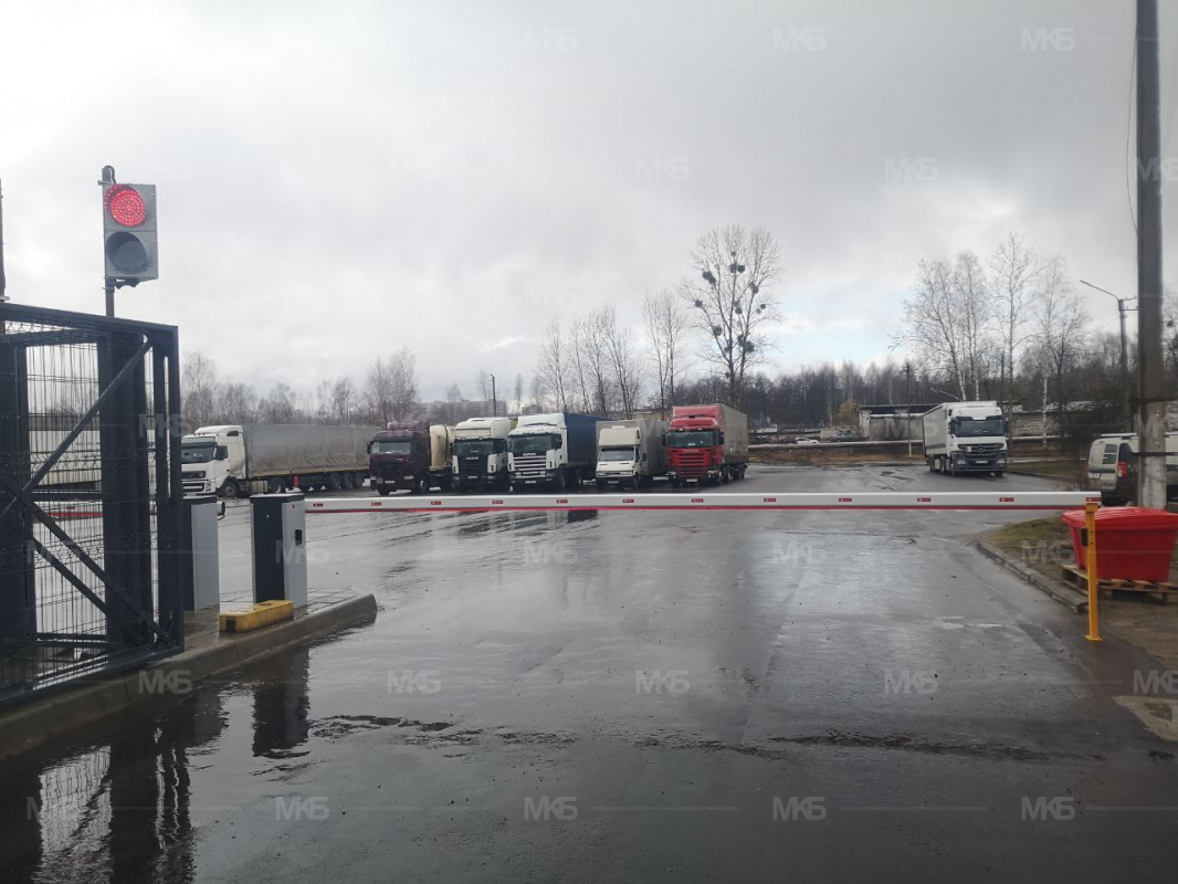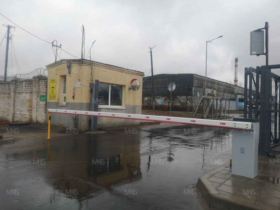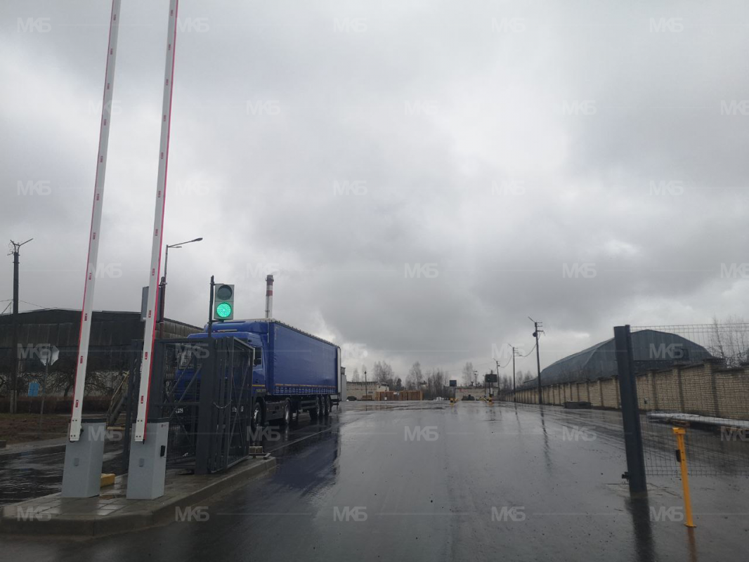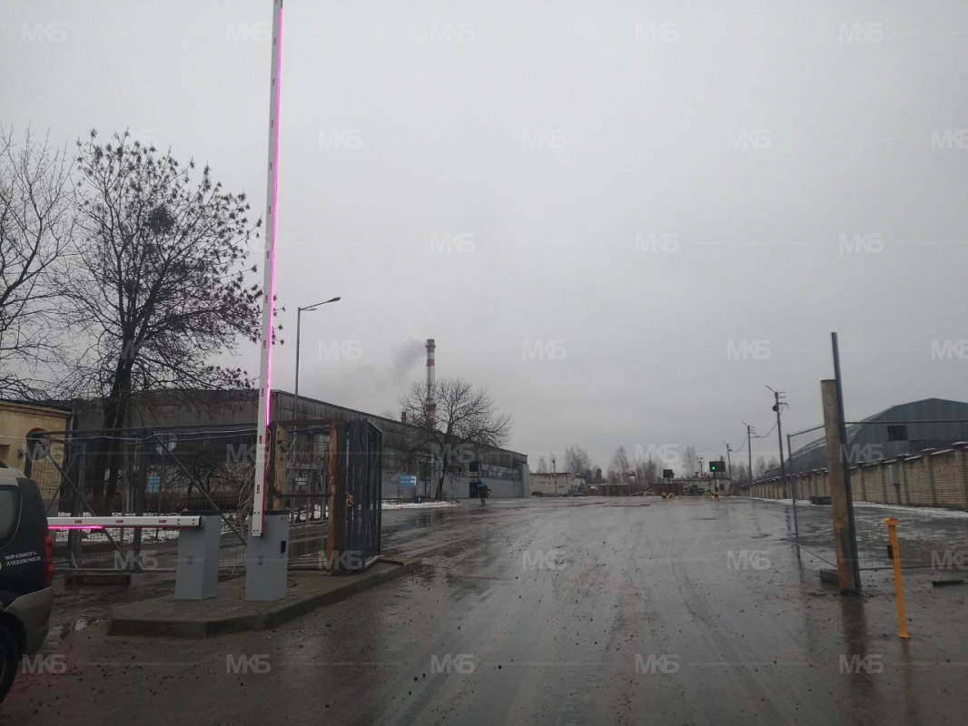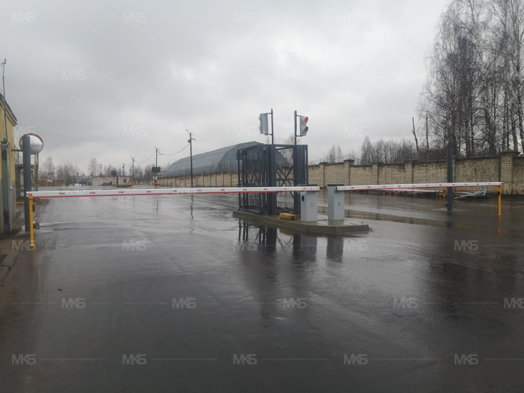 Установка шлагбаумов с фотоэлементами, системой световой индикации по типу Светофор красный/зеленый, диодная подсветка стрел шлагбаумов