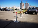 Установка 2-х шлагбаумов FAAC с круглыми стрелами, с беспроводными фотоэлементами, с gsm-управлением и управлением с пультов ДУ. Для перекрытия резервного проезда использованы парковочные столбики.