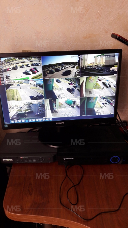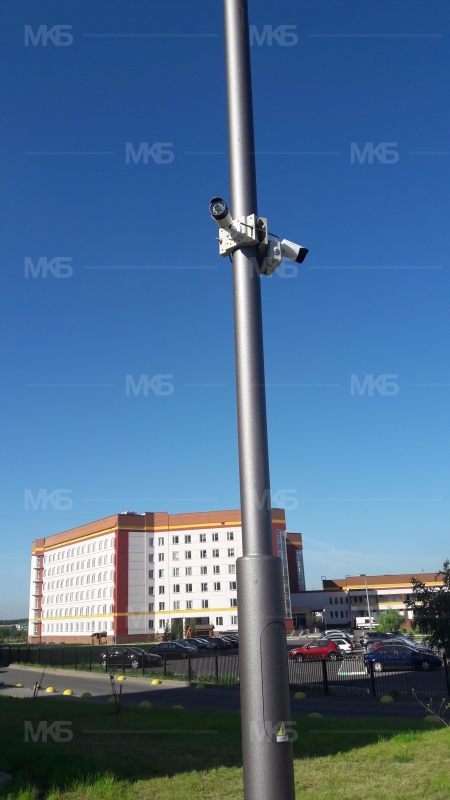 Установка системы видеонаблюдения из 9 камер и доступом к архиву через Интернет (камеры 2Мп), крепление 2 камер удаленно на столбе освещения для фиксации проезда через шлагбаум