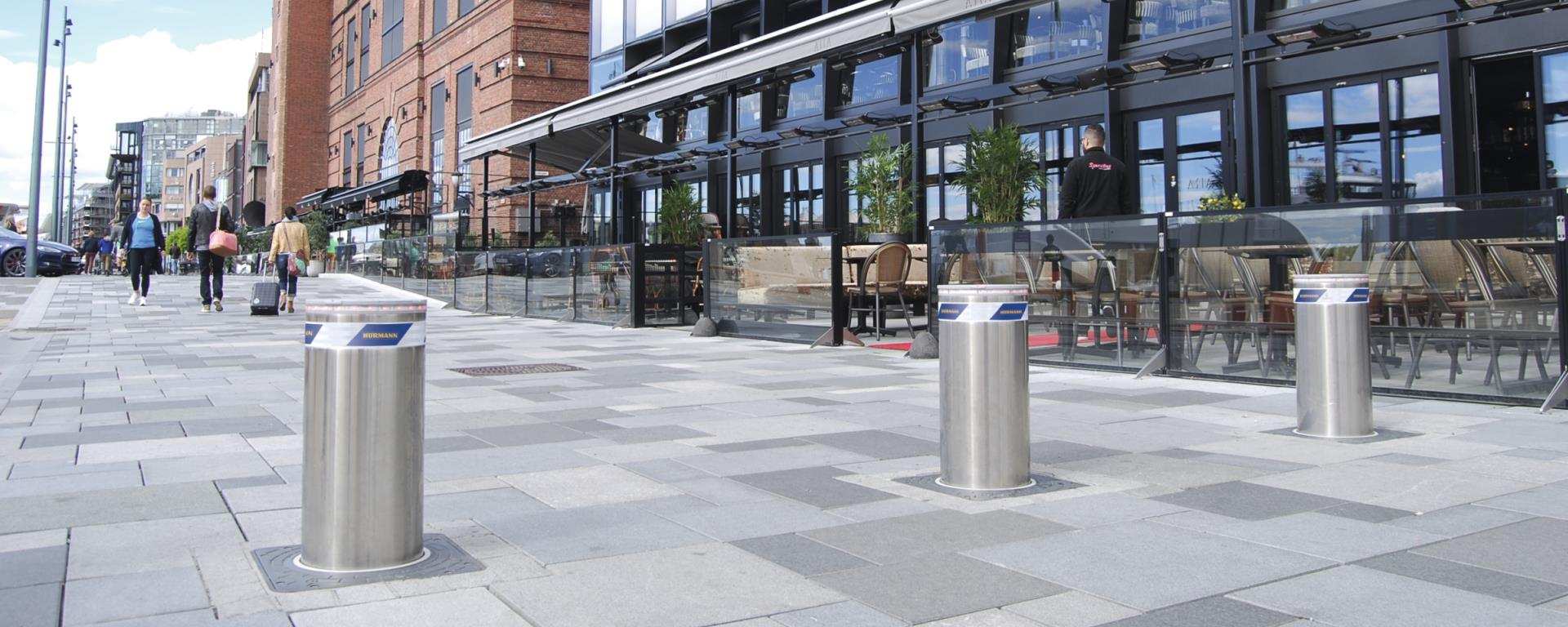 автоматизация въезда и выезда на территорию в зоне движения пешеходов. В данном контексте болларды широко используются в пешеходных зонах для ограничения проезда транспорта, но при этом абсолютно не ограничивают движение людей.